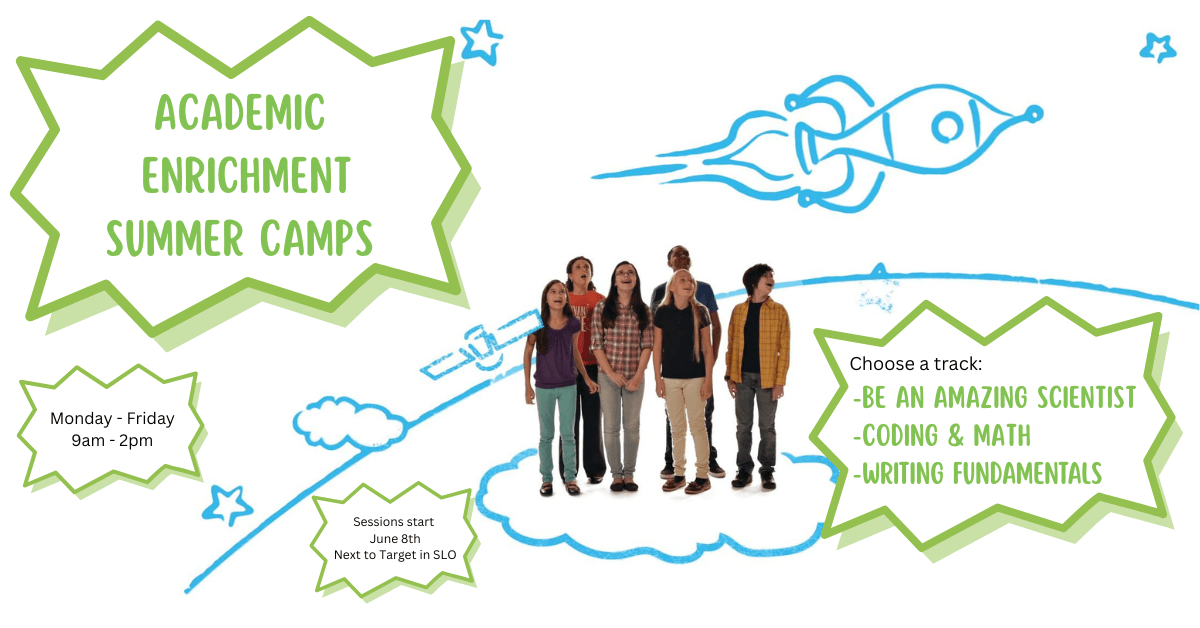 Academic Summer Camps start June 8th, 2026 Mon-Fri 9am-2pm in San Luis Obispo. Use this link to reserve your Summer Camp spot today.